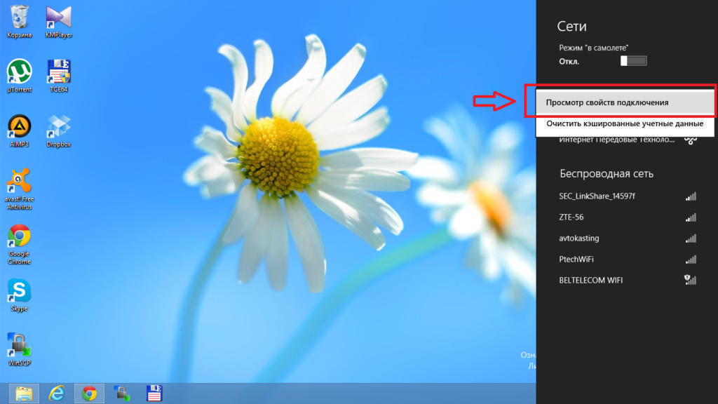 Щелкнуть правой кнопкой мыши на только что созданном подключении «Интернет Передовые Технологии» и выбрать пункт «Просмотр свойств подключения»:
