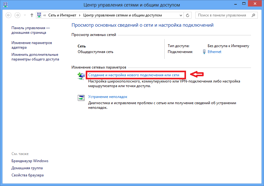 Перейти к созданию нового подключения, нажав на ссылку «Создание и настройка нового подключения или сети»: