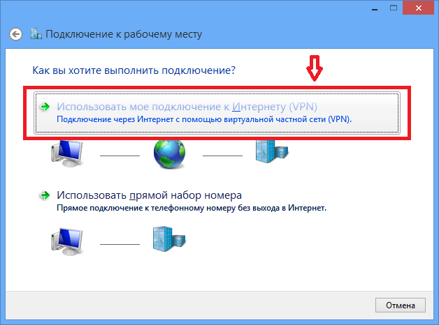 Выбрать пункт «Использовать мое подключение к Интернету (VPN)»: