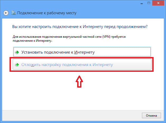 Выбрать пункт «Отложить настройку подключения к Интернету»: