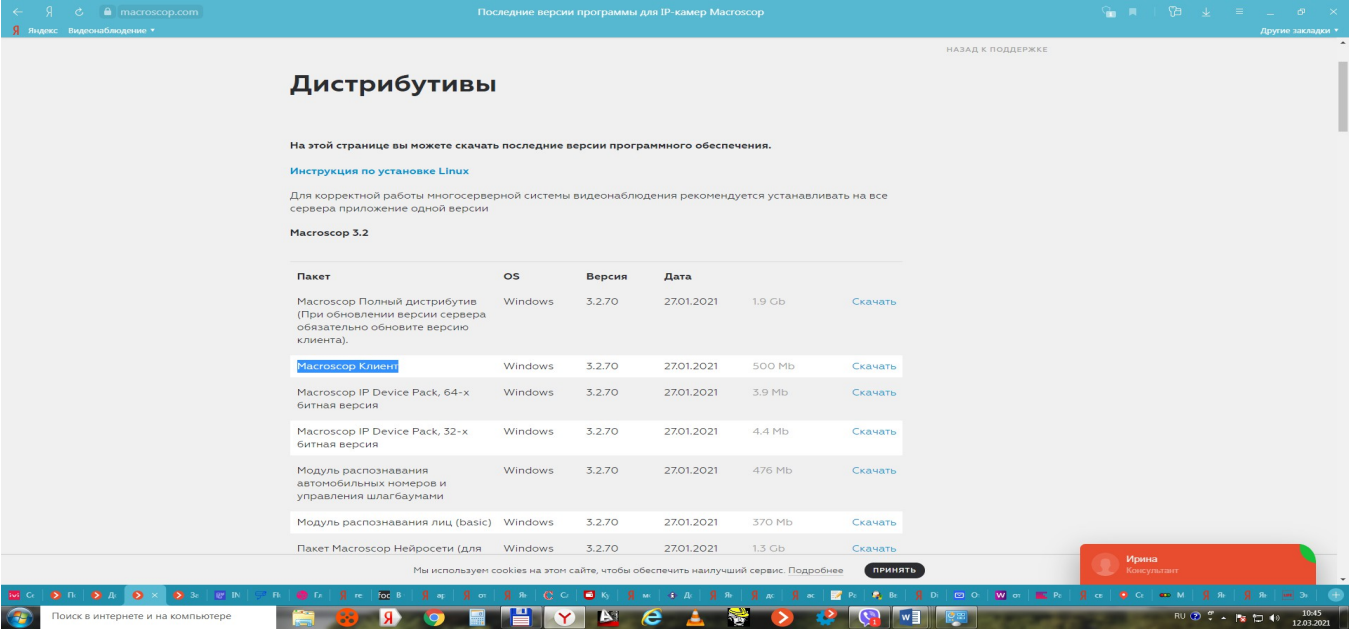 1. Для установки Macroscop Клиента перейдите по ссылке macroscop.com/podderzhka/distributivy и скачайте приложение.